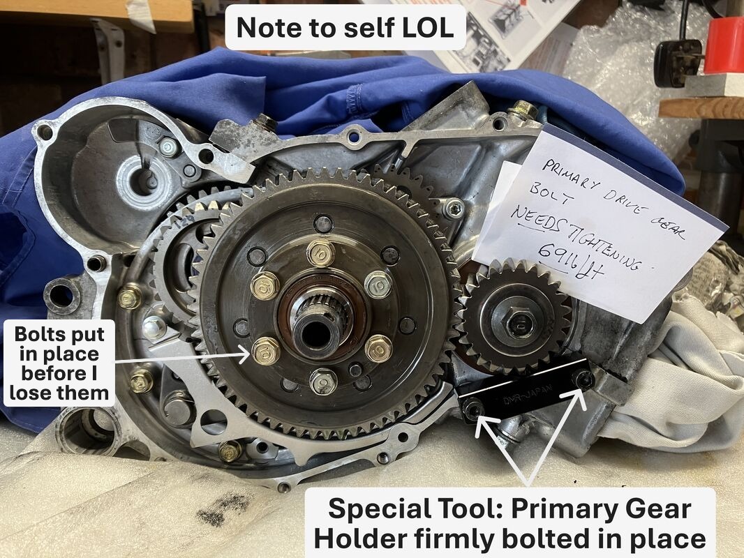 Message to self, reminder of torquing up Primary Drive Gear Bolt, a must in my case if it isn’t done straight away.