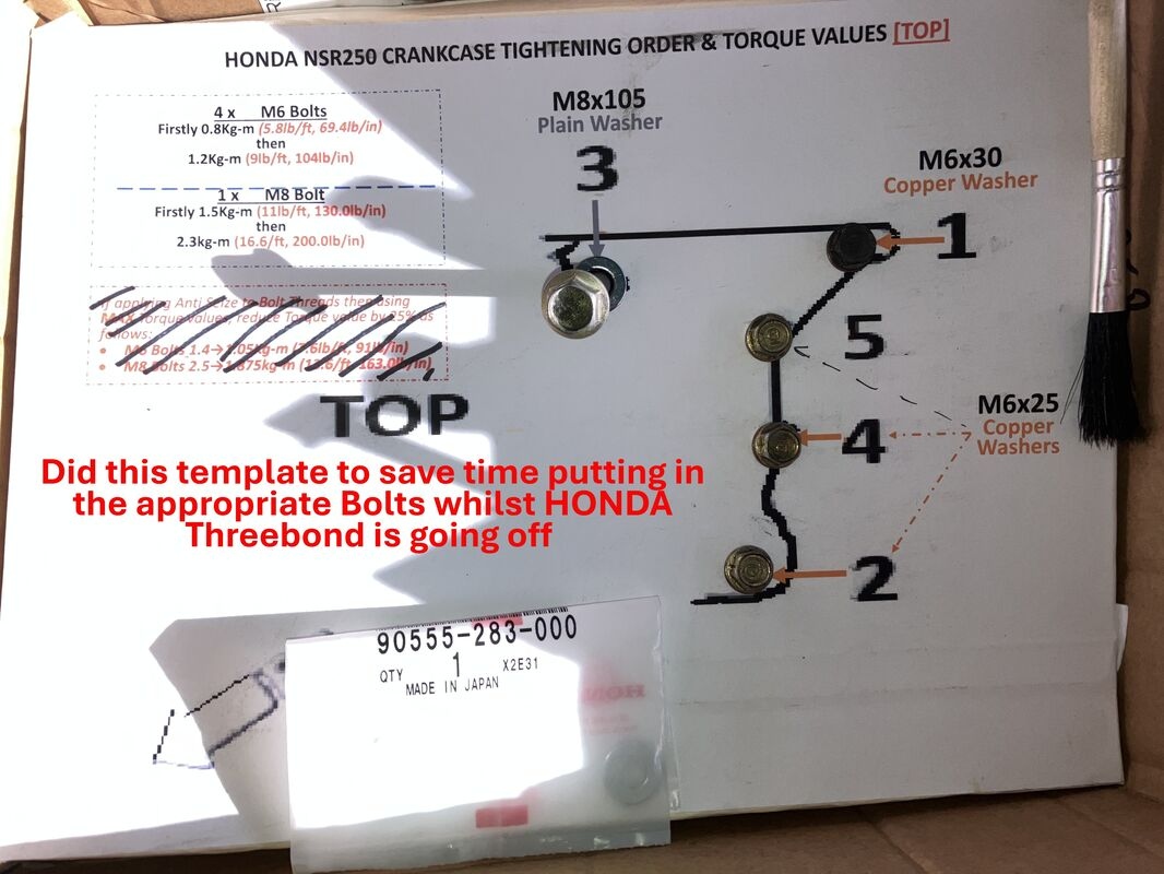 Sorry I cannot be more helpful or forthcoming, I am writing this Rebuild journey somewhat after the event with the hope that the images may provide some help to those who are in the same boat as me so to speak and also as an aide memoire to when I do my NSR250 88 MC18.
