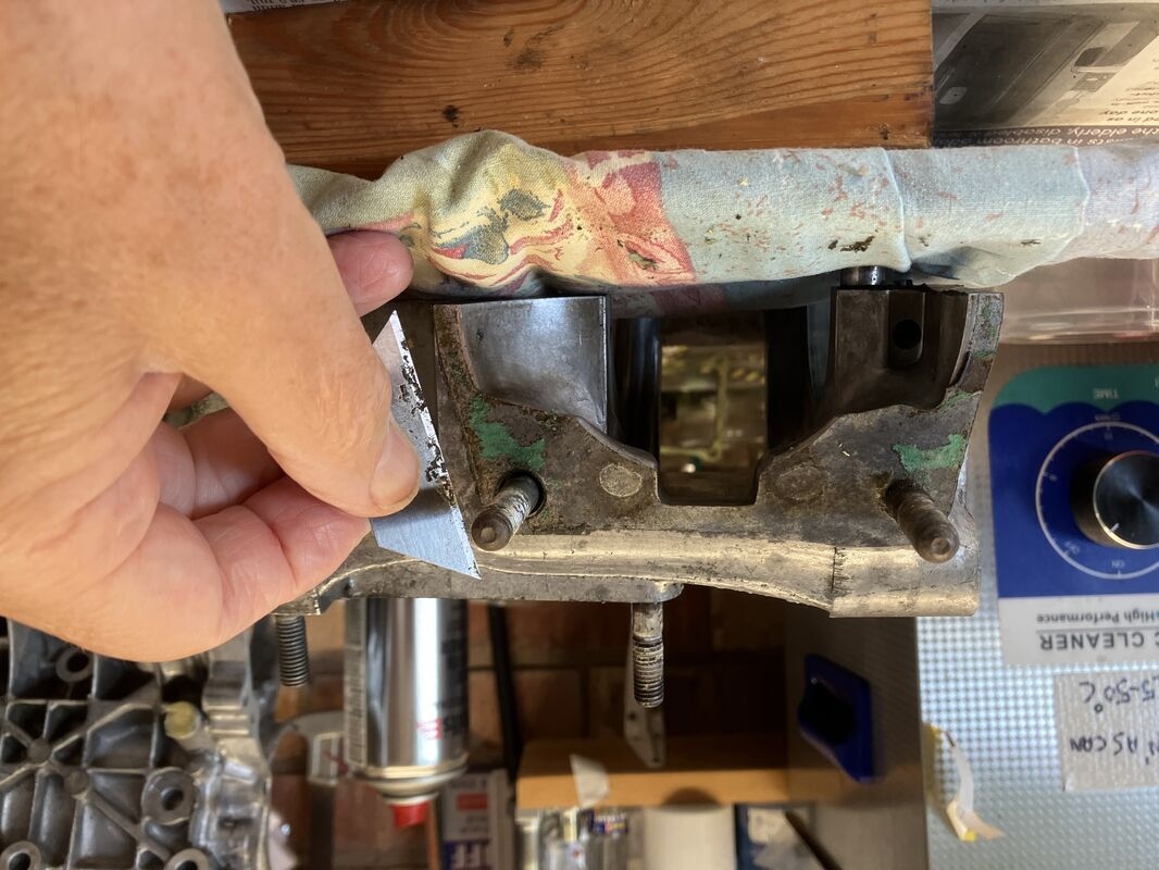 Cleaning the Crankcase/Cylinder Barrel mating surfaces was next, however, I tried in vain to remove the Crankcase to Cylinder studs, using repetitions of heat and plenty of KROIL Penetrating Oil left soaking for more time than I would have liked, so decided to carry on cleaning the mating surface until I could get the Studs out.