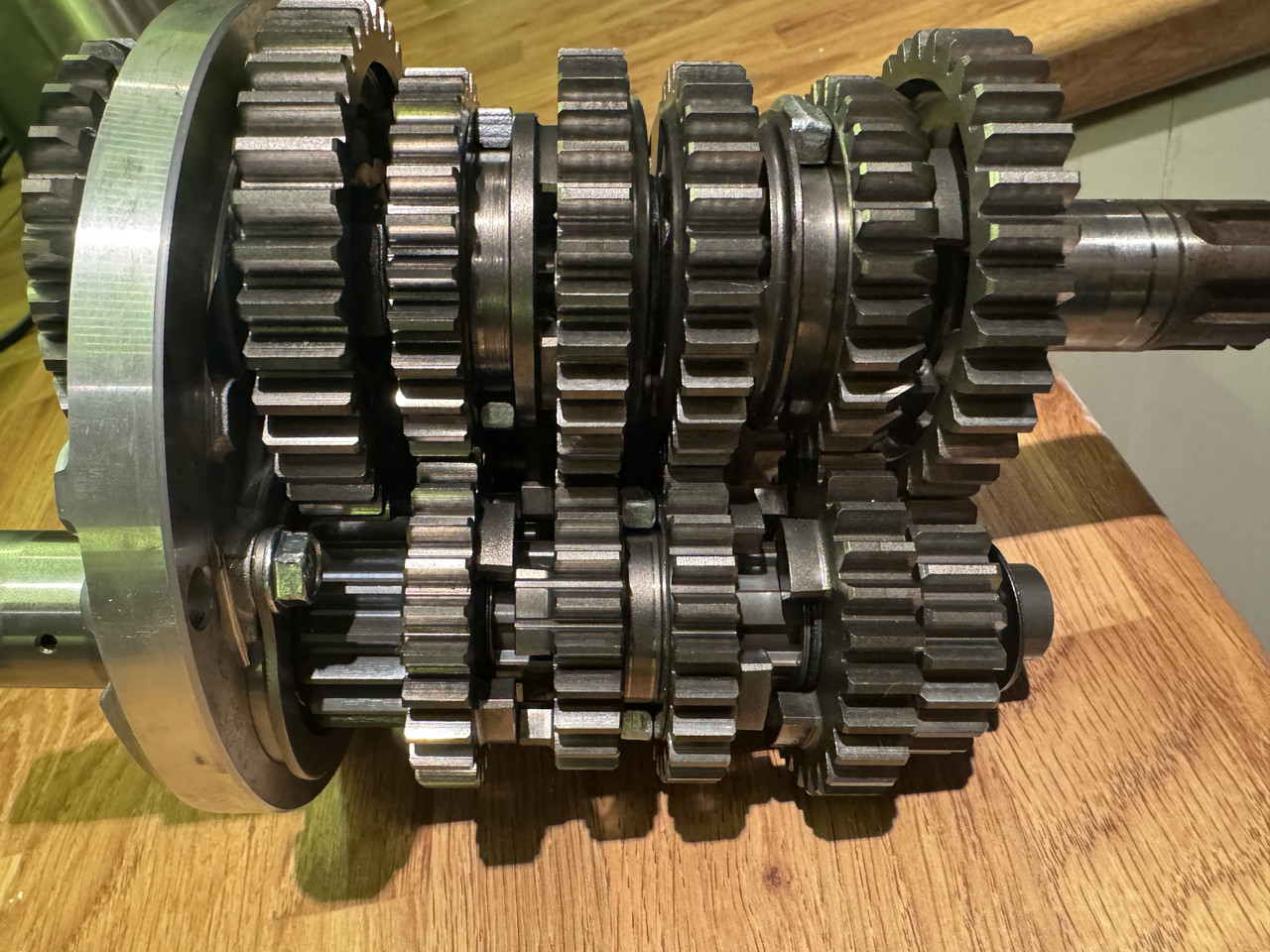 Now I've managed to get my hands on an the following unobtainable HRC 17t input shaft for a dry clutch, so I can start the job of installing my RS250 NF5 HRC close ratio gearbox.