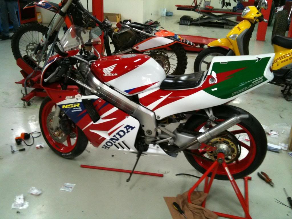 Hi There Joe, very impressive a nice job the bike looks like new,it just goes to show a bit of enthusiasm and some elbow grease can transform a fairly tired looking bike into somthing like this,welldone glad to see another NSR thats gonna be around for years to come,ps would you sell your old cans?, goodluck,jonmac