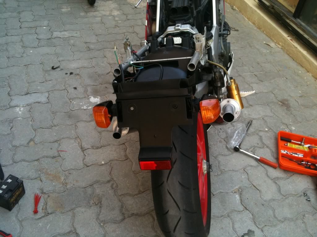 * Bodywork is tatty - Needs to be cleaned and plastic welded in areas, currently at a bodywork specialist for cleaning and re-laquer...might even opt for a decent Chinese fairing set or get the whole set airbrushed in OEM colours.