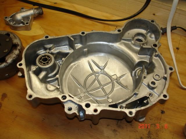Waterpump rebuilt and installed. Clutch cover installed temporarily. Awaiting new clutch basket:
