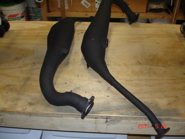 Pipes blasted and coated with barbecue paint. Should have decoked them first. Next time i guess: