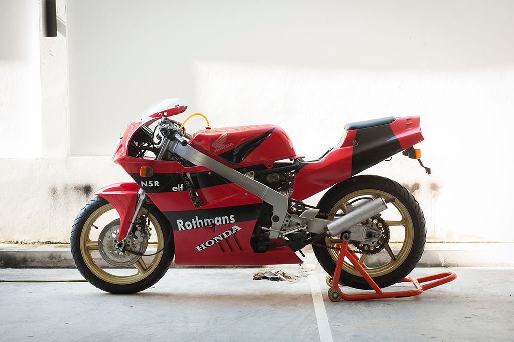 My fixation with the NSR250 began whilst staring at Tyga's Rothmans MC28 project bike at Bang Saen bike week here in Thailand. I asked if it was for sale, they said no, I was relieved - how would I have been able to resist? Until then I’d wanted a VFR400 for a long time and had never given much thought to the Honda two strokes. I spend more than half of each year here and I had had a cursory look around for Yamaha TZs (my dad's had TZ/TD racing bikes since before I was born in the early 80s) but then realised that most of the two strokes here are smaller ones such as the TZM150 and NSR150. I guess there just wasn’t the demand or the cash around back then to justify importing many bigger bikes, but a few do show up from time to time. Usually they have two significant bad points: they have no legal paperwork, and they’re trashed. When I found one I bargained that having one of these two things was better than nothing… (in case you were wondering, it had the paperwork)