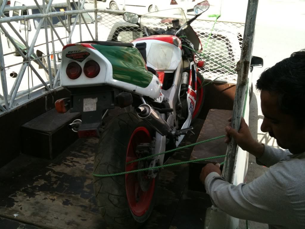 Will fill this thread full of images throughout the day as I start cleaning it up. First one below; Driver 'securing' the bike scrapyard style Laughing
